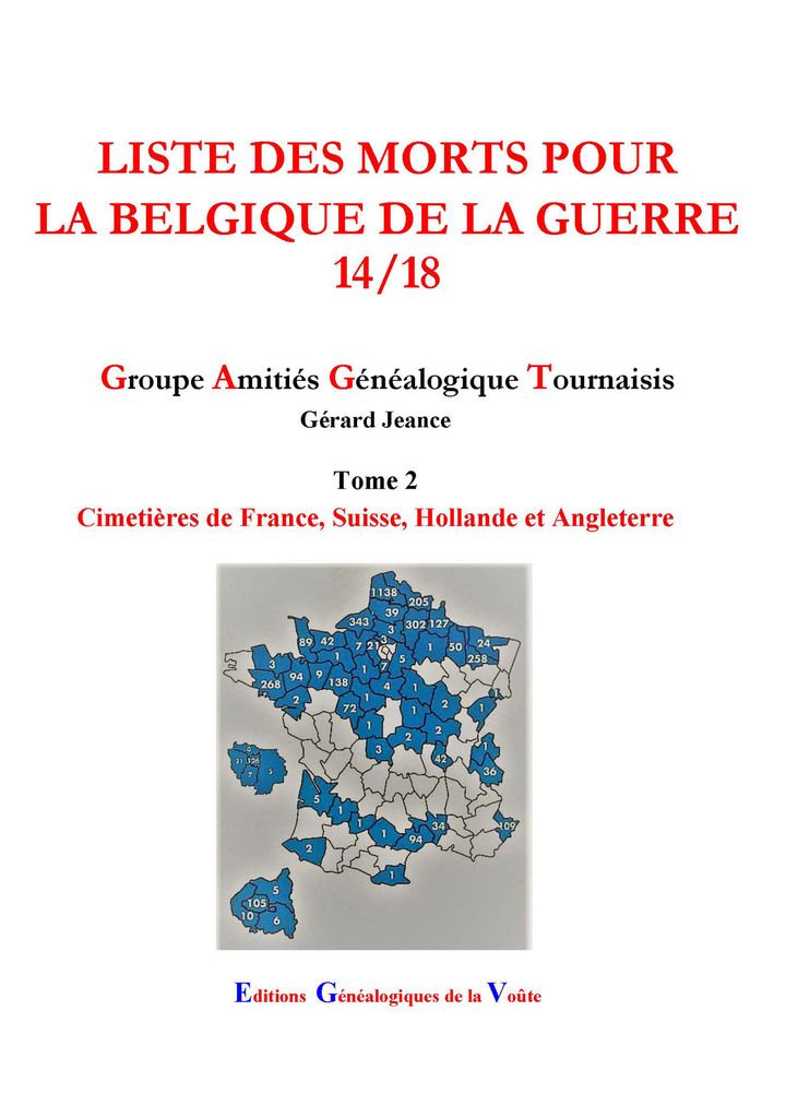 Liste des morts pour la Belgique de la guerre 14-18 Tome 2 Cimetières de France, Suisse, Hollande et Angleterre
